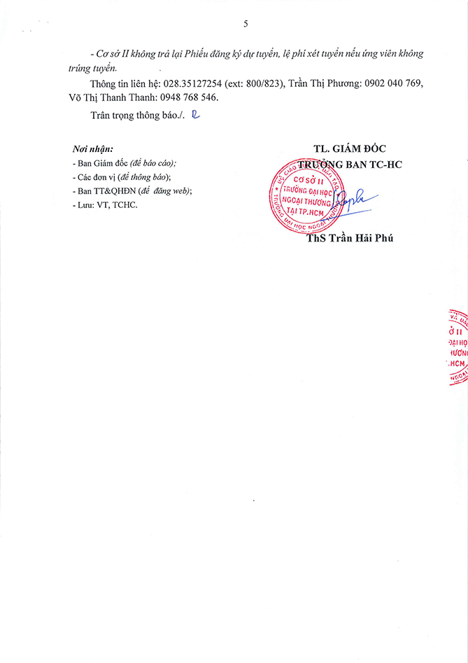 - Cơ sở II không trả lại Phiếu đăng ký dự tuyển, lệ phí xét tuyển nếu ứng viên không trúng tuyển.