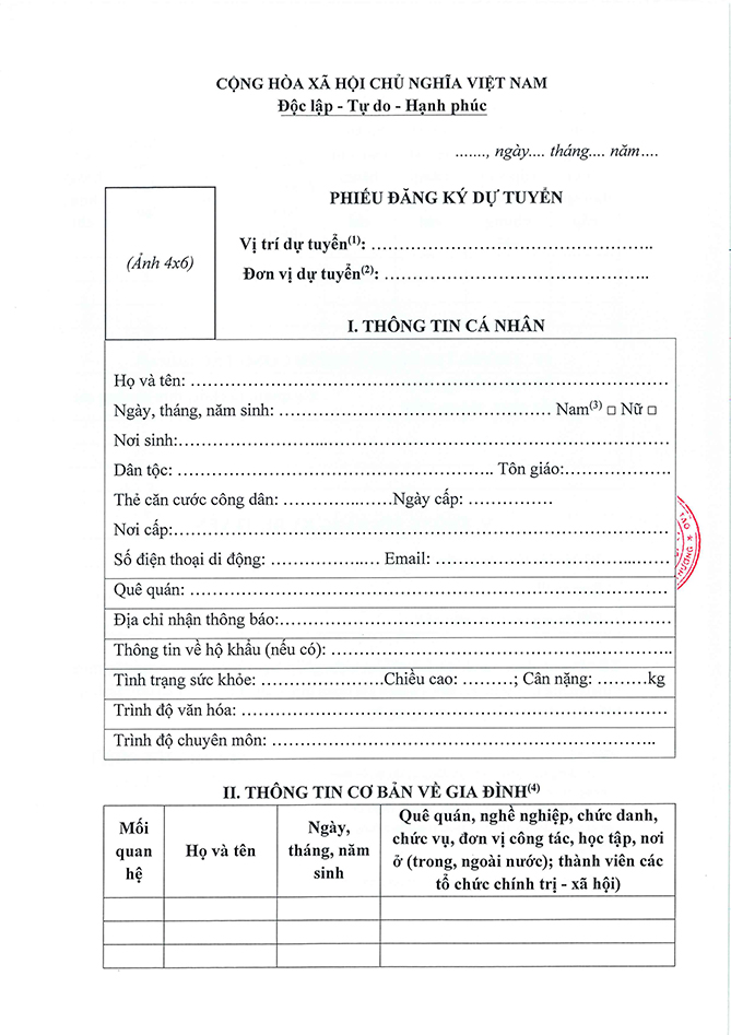 PHIẾU ĐĂNG KÝ DỰ TUYỂN
